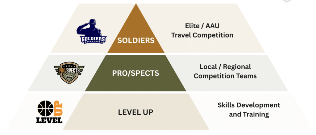 We welcome all levels of basketball experience to come and develop through the LevelUp basketball program designed by Darnell Campbell – and when ready our players are drafted onto PRO/SPECTS competition teams for local tournaments – and once they have proven their discipline, effort and skill, players can advance to the Central Coast Soldiers, representing the region at the AAU/Elite level.